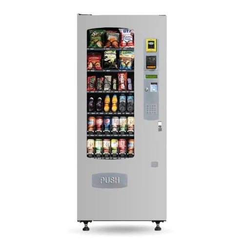 The Bluerock Combo is the perfect vending solution for locations with limited space, delivering both snacks and drinks in one sleek, reliable unit. With 3 snack trays offering 6 chip selections and 6 candy selections, plus 3 beverage trays with up to 18 drink options, this machine provides exceptional variety without compromising capacity.